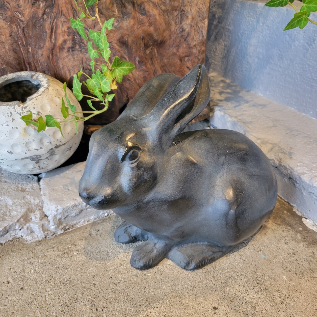 黒いアイアンのうさぎです。 とっても重いです。 (3kgぐらいありそうです。) 鼻からおしりまで25cm程度 高さ23cm程度 はは16cm程度