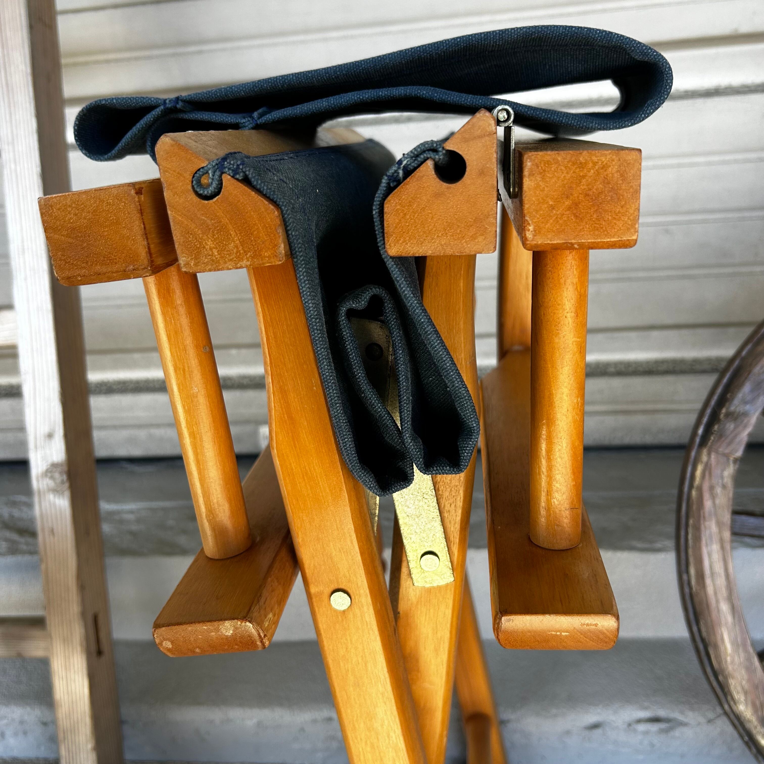 ヴィンテージ木製フレーム部分に 新しく帆布で座面背面を作成しました。使い込むほどに味わいが増すのも楽しみのひとつです。